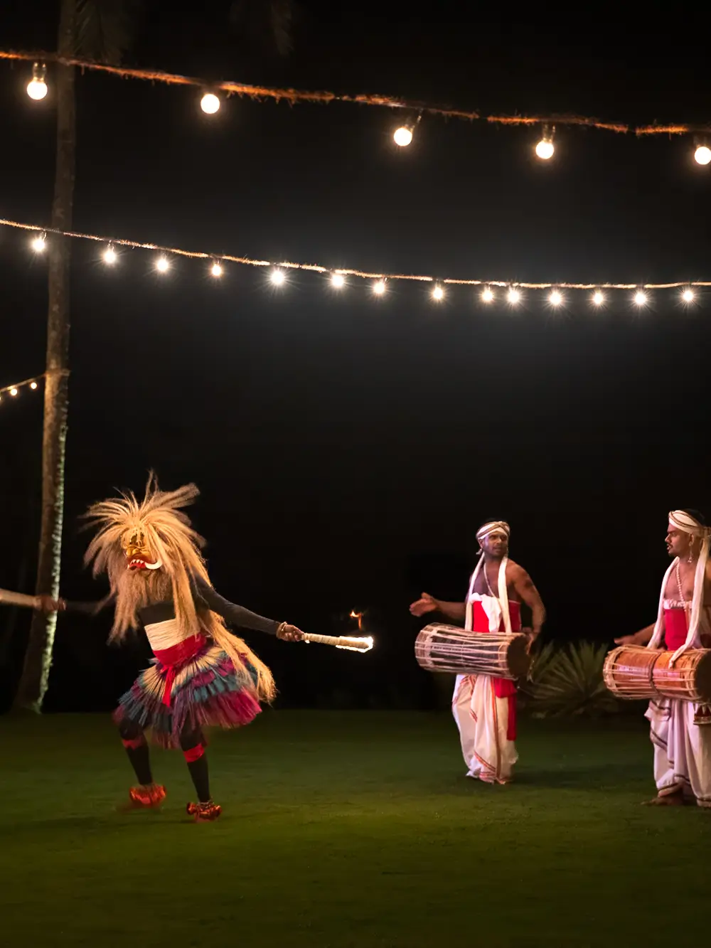 Experience an exclusive, once-per-stay show showcasing Sri Lanka’s popular southern folk dances. The performance is a vibrant display of Devil Masks, fire elements, and drumming that celebrates local culture and tradition.